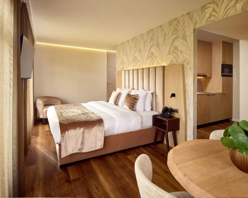 Notre nouvel appartement est parfait pour un long séjour, offrant une combinaison idéale de confort et de fonctionnalité. Dès votre arrivée, vous découvrirez une cuisine moderne et entièrement équipée avec un réfrigérateur, deux plaques de cuisson, un lave-vaisselle, un four et un micro-ondes, vous permettant de préparer vos repas en toute simplicité. La chambre séparée, conçue pour deux personnes, est élégamment aménagée et dispose d'une table confortable avec deux chaises ainsi que d'une smart TV, idéale pour se détendre après une longue journée. La salle de bain comprend une spacieuse douche à l’italienne et des toilettes séparées pour plus de confort. Grâce à la climatisation, vous profitez d’une température agréable en toute saison. Cet appartement offre toutes les commodités nécessaires pour un séjour serein et confortable. Cet appartement est situé dans une maison séparée à côté de notre hôtel. Une caution de 150 euros est demandée pour cet appartement studio.