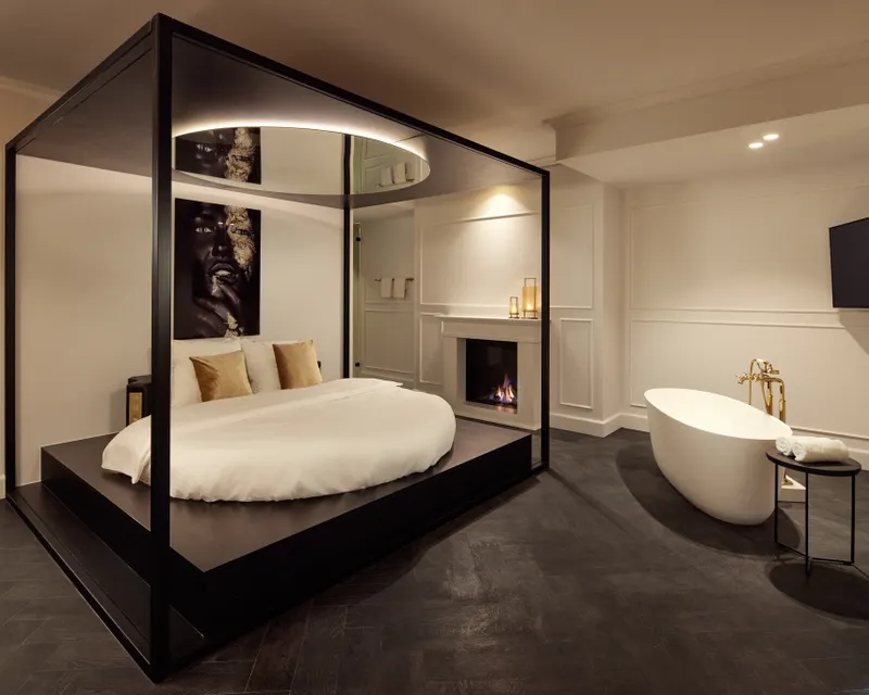 La toute nouvelle suite Paris combine des éléments classiques avec un style moderne pour créer une véritable suite parisienne moderne avec des accents dorés. La suite spacieuse a une superficie de 49m2 et dispose d'un lit rond confortable, d'une baignoire îlot, d'un balcon et d'une salle de bain ouverte avec douche. La cheminée, l'éclairage d'ambiance romantique et l'audio Bluetooth garantissent un séjour d'une nuit vraiment unique.