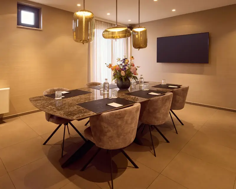 Notre plus petite chambre Durbuy est l'endroit idéal pour une réunion tranquille avec un petit groupe. Cette salle de réunion est toujours aménagée en bloc pour un maximum de 6 personnes.