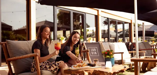 Jardin beschikt niet alleen over een gezellig restaurant binnen maar ook over een groot terras met buitenspeeltuin.