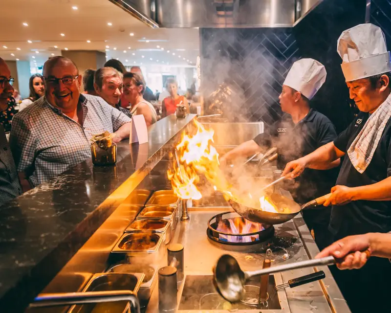 Live wok & het beste van het land en de zee live klaargemaakt in de open keuken en lavagrill